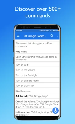 Θέλετε να ξεκλειδώσετε το πλήρες δυναμικό της αλληλεπίδρασης με το "Ok Google"; Αυτή η εφαρμογή αποτελεί τον απόλυτο οδηγό για να μετατρέψετε την εμπειρία σας σε μια απρόσκοπτη και ισχυρή. Προσφέρει μια εκτενή συλλογή εντολών, σχεδιασμένη να διευκολύνει την καθημερινότητά σας και να επεκτείνει τις δυνατότητες της συσκευής σας. Υποστηρίζει εντολές σε Αγγλικά, Ισπανικά, Γαλλικά και Πορτογαλικά, ενώ η ίδια η εφαρμογή είναι διαθέσιμη σε Αγγλικά, Ισπανικά, Γαλλικά, Ρωσικά, Πορτογαλικά, Ταϊλανδικά και Γερμανικά, εξασφαλίζοντας μια οικεία εμπειρία για χρήστες από κάθε γωνιά του πλανήτη.