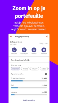 Η εφαρμογή ING Nederland προσφέρει εύκολη και ασφαλή διαχείριση των τραπεζικών σας συναλλαγών, οπουδήποτε κι αν βρίσκεστε. Αποκτήστε πλήρη έλεγχο των ιδιωτικών και επαγγελματικών λογαριασμών σας, από την προβολή υπολοίπου έως τις επενδύσεις, πληρωμές, δάνεια και ασφάλειες, όλα σε μία εφαρμογή.