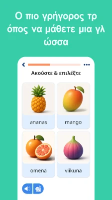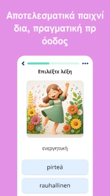 Φανταστείτε να μιλάτε, να γράφετε και να διαβάζετε Φινλανδικά με αυτοπεποίθηση, απολαμβάνοντας κάθε βήμα της εκμάθησης. Το FunEasyLearn είναι εδώ για να μετατρέψει αυτή τη φαντασία σε πραγματικότητα, προσφέροντας έναν συναρπαστικό και αβίαστο τρόπο για να κατακτήσετε τους κανόνες της φινλανδικής γλώσσας, να εμπλουτίσετε το λεξιλόγιό σας και να χειρίζεστε με ευκολία τις καθημερινές συνομιλίες. Ξεκινήστε ένα ταξίδι όπου η εκμάθηση γίνεται παιχνίδι και η γνώση φινλανδικών μια απολαυστική εμπειρία.