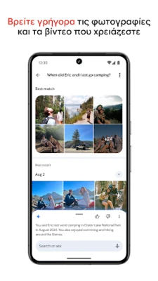 Μετατρέψτε τη συλλογή σας σε ένα οργανωμένο αριστούργημα και τις φωτογραφίες σας σε τέχνη, χάρη στην έξυπνη τεχνολογία των Φωτογραφιών Google. Η εφαρμογή τακτοποιεί αυτόματα τις διπλότυπες ή παρόμοιες λήψεις σε στοιβαγμένες ομάδες και δημιουργεί διαισθητικούς φακέλους για στιγμιότυπα οθόνης, έγγραφα και εξατομικευμένα άλμπουμ, απλοποιώντας την καθημερινή σας οργάνωση. Για τις πιο προσωπικές σας στιγμές, διαθέτετε έναν κλειδωμένο φάκελο, προστατευμένο με το κλείδωμα οθόνης της συσκευής σας, για απόλυτη ιδιωτικότητα. Επιπλέον, εκμεταλλευτείτε τα εργαλεία επεξεργασίας που υποστηρίζονται από Τεχνητή Νοημοσύνη: αφαιρέστε ανεπιθύμητα στοιχεία με τη Μαγική Γόμα, αναζωογονήστε θαμπές φωτογραφίες με την λειτουργία Ξεθάμπωμα και βελτιώστε τον φωτισμό με το Φως πορτρέτου, όλα με λίγα μόνο αγγίγματα. Βρείτε οτιδήποτε ψάχνετε αβίαστα, χρησιμοποιώντας φυσική γλώσσα, όπως "Η Αλίκη και εγώ να γελάμε" ή "Καγιάκ σε μια λίμνη".