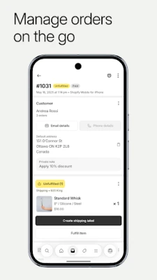 Η διαχείριση της επιχείρησής σας δεν ήταν ποτέ ευκολότερη, ακόμα και εν κινήσει. Η εφαρμογή Shopify σάς επιτρέπει να επεξεργάζεστε παραγγελίες, να παρακολουθείτε το απόθεμα, να αναλύετε τις πωλήσεις και να εκκινείτε καμπάνιες μάρκετινγκ απευθείας από την κινητή σας συσκευή. Απλοποιήστε το dropshipping με εύκολη διαχείριση αποθεμάτων και αυτοματοποίηση παραγγελιών. Ανεβάστε εντυπωσιακές φωτογραφίες προϊόντων, ορίστε λεπτομέρειες και τιμές, οργανώστε συλλογές και προσαρμόστε το απόθεμα σαρώνοντας barcodes. Όλα τα απαραίτητα εργαλεία είναι στη διάθεσή σας, εξασφαλίζοντας μέγιστη αποδοτικότητα και κερδοφορία. Παρακολουθήστε ζωντανά τις πωλήσεις και την επισκεψιμότητα, λάβετε άμεσες ειδοποιήσεις για νέες παραγγελίες και επικοινωνήστε απρόσκοπτα με την ομάδα σας, όπου κι αν βρίσκεστε.